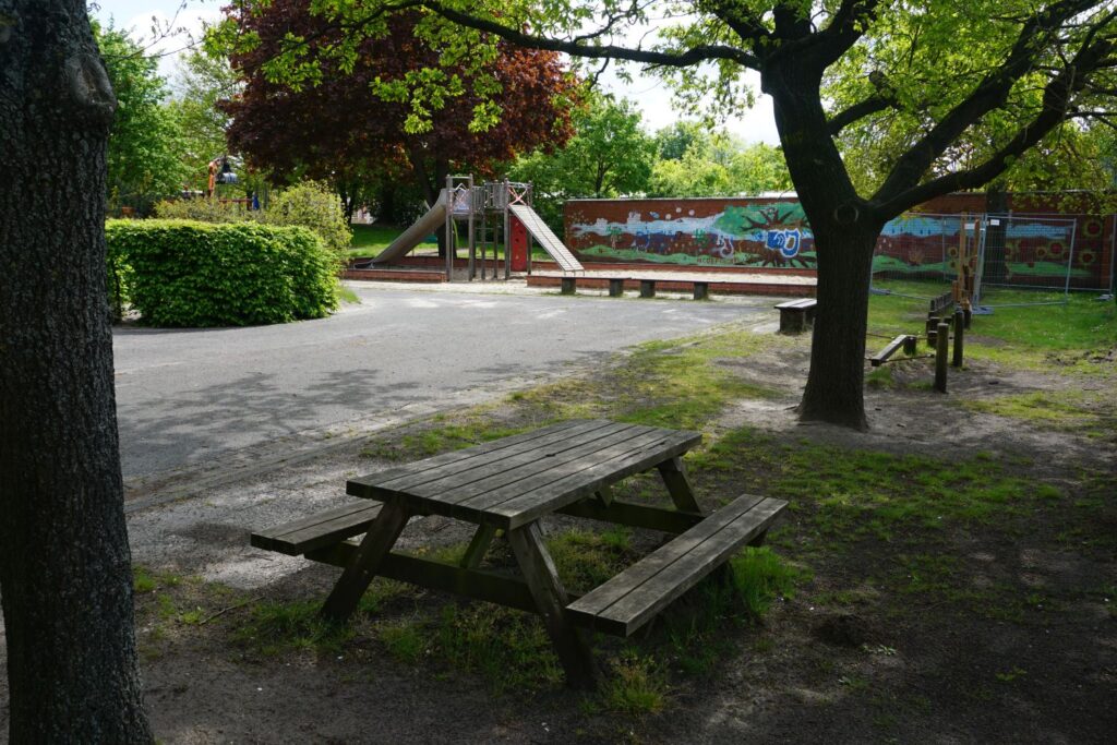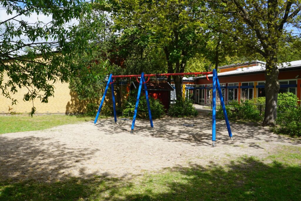 Wir haben einen großen Pausenbereich, der auch den angrenzenden Sportplatz teilweise mit umfasst. Eingerahmt von großem, altem Baumbestand bietet er den Kindern viel Bewegungsmöglichkeiten und Raum zum Spielen. Seit einigen Jahren entwickeln wir die Spielmöglichkeiten weiter und sind mit unserem Plan schon fast ans Ziel gekommen.